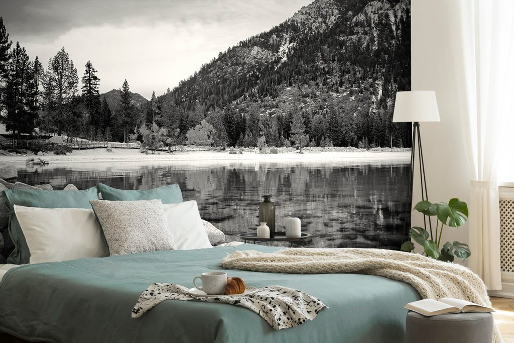 Samolepící fototapeta černobílé průzračné jezero v horách