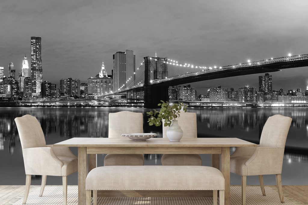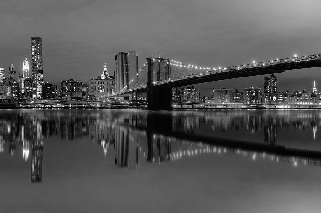 Samolepící fototapeta černobílý most ve večerním Manhattanu