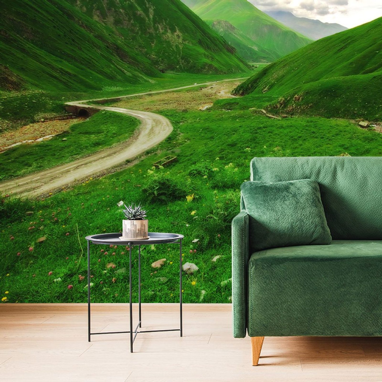 Samolepící fototapeta cesta uprostřed zelených kopců