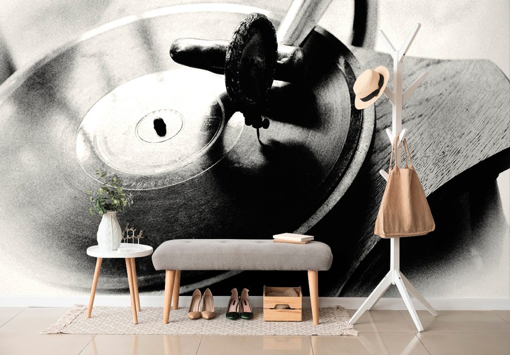 Samolepící fototapeta detail starobylého gramofonu v černobílém provedení