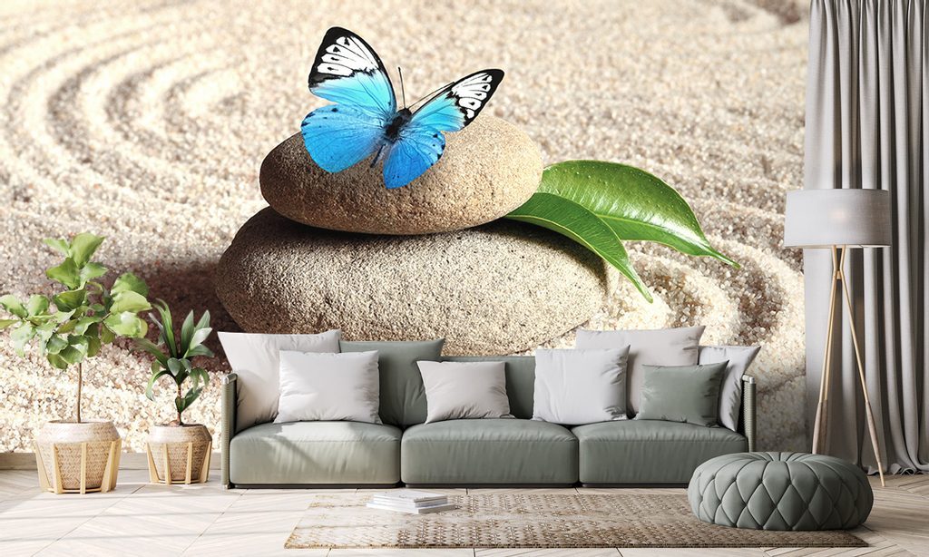 Samolepící fototapeta krásný motýl v zen zahradě