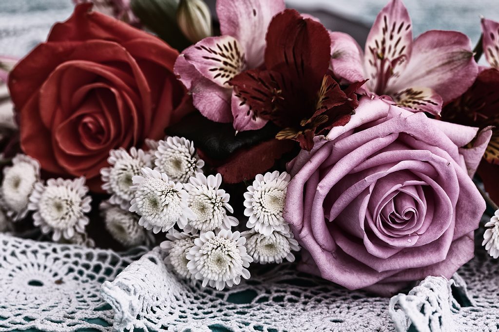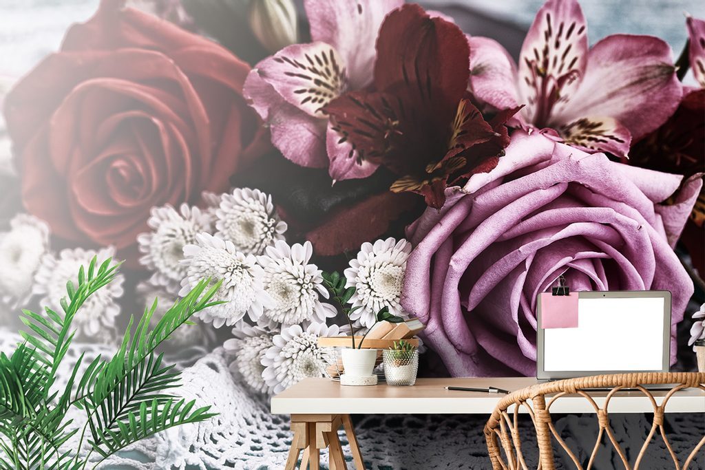 Samolepící fototapeta kytice růží s retro nádechem