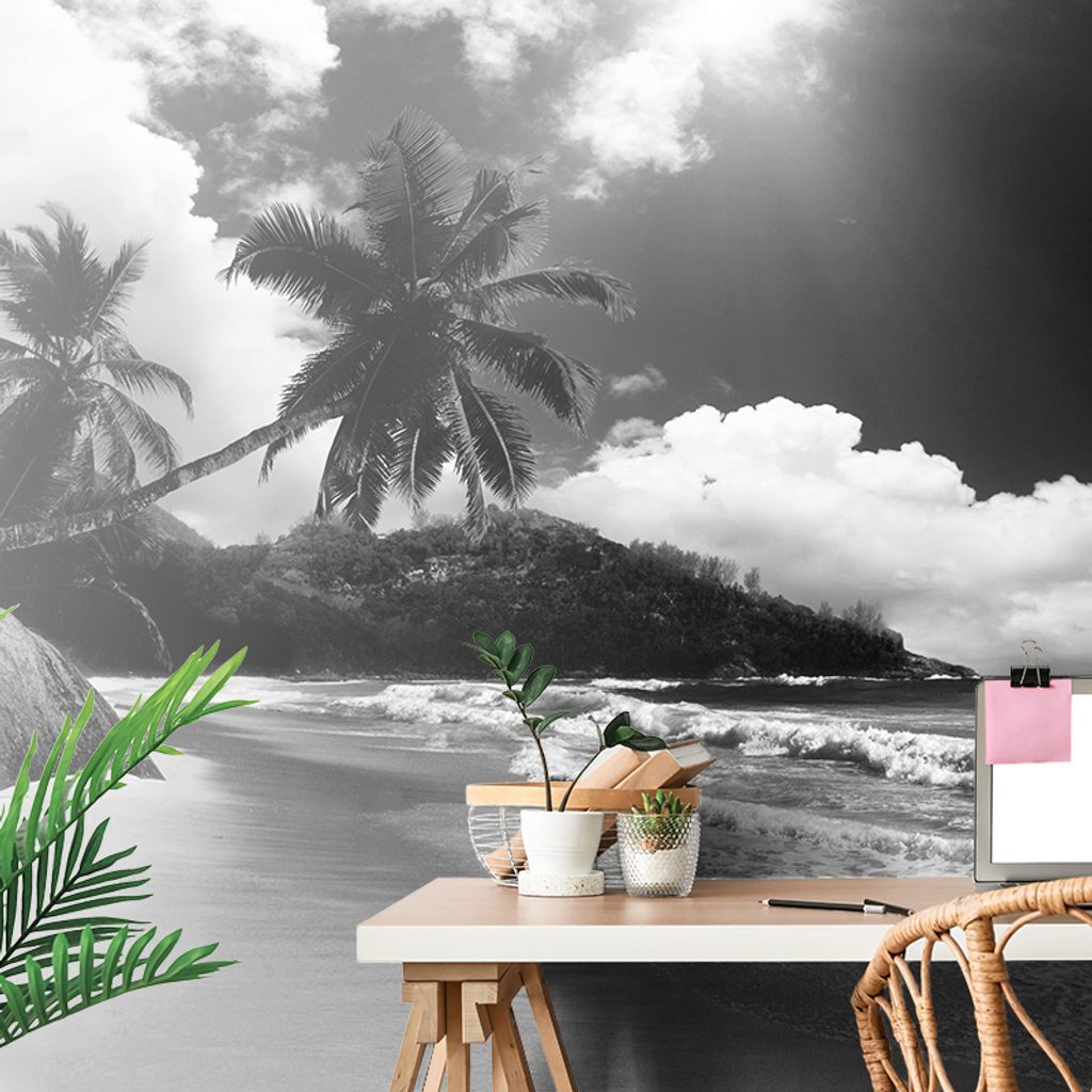 Samolepící fototapeta nádherné Seychely v černobílém provedení