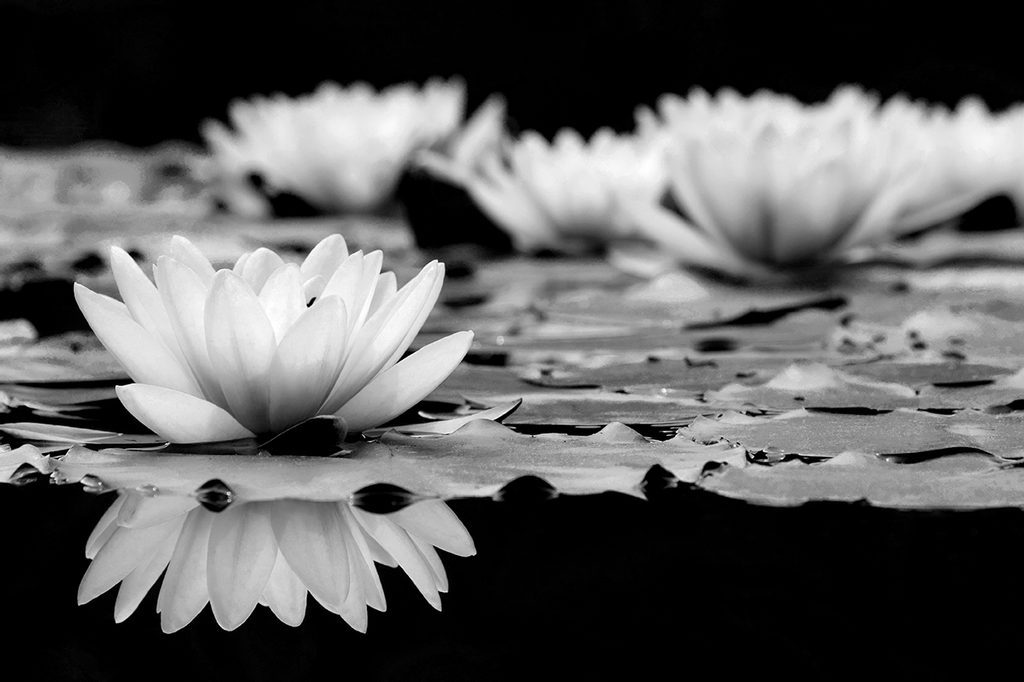Samolepící fototapeta okouzlující květ lotosu v černobílém provedení