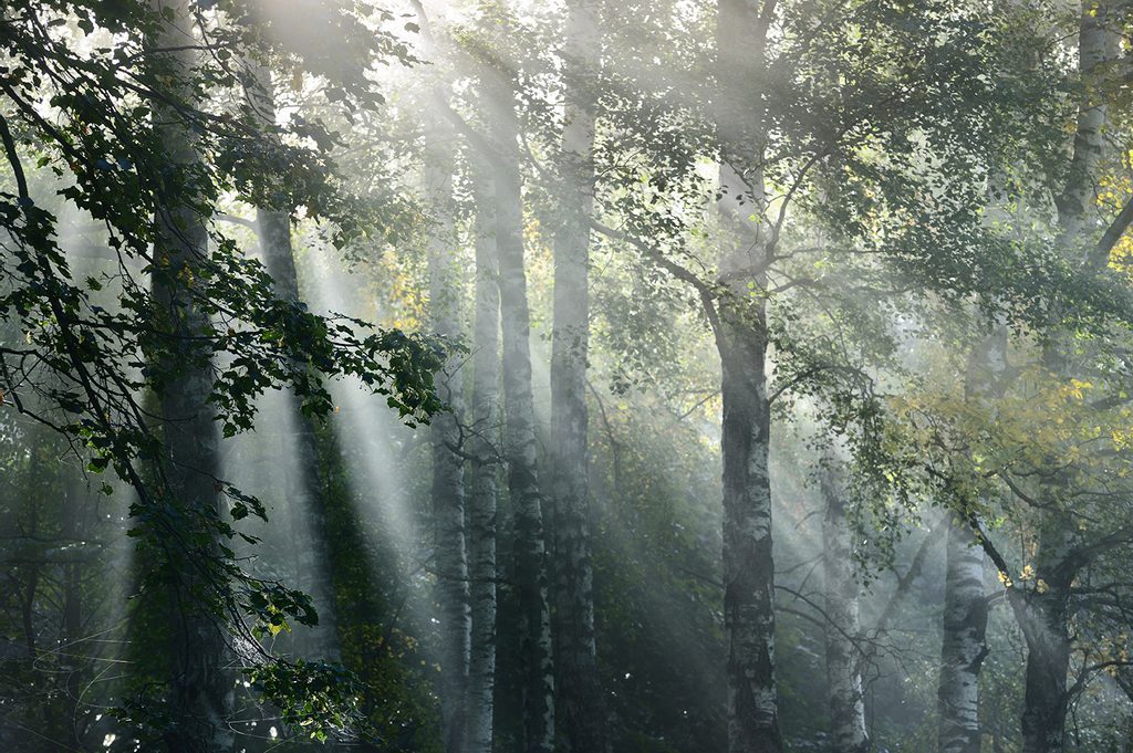Samolepící fototapeta paprsky slunce v lese