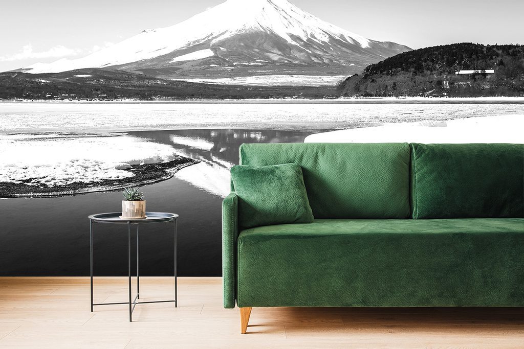 Samolepící fototapeta posvátná hora Fuji v černobílém provedení