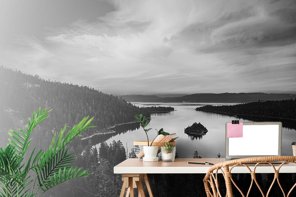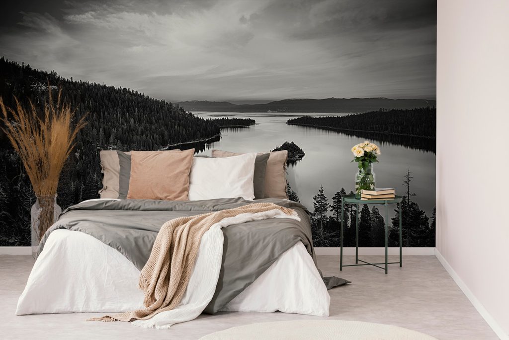 Samolepící fototapeta příroda po západu slunce v černobílém provedení