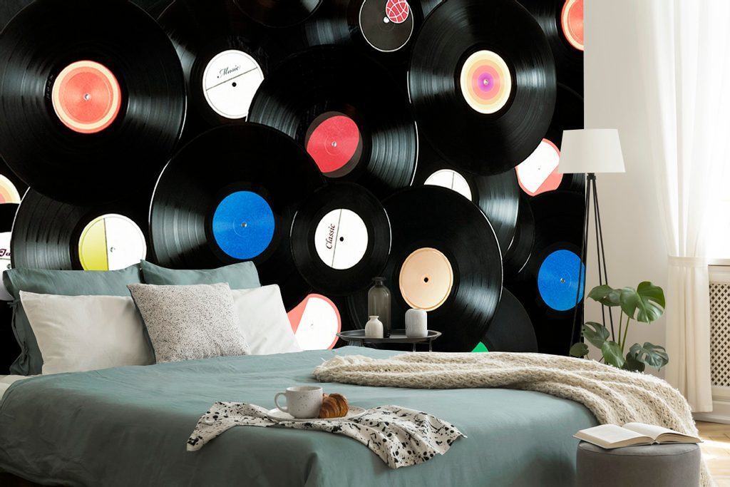 Samolepící fototapeta sbírka retro desek