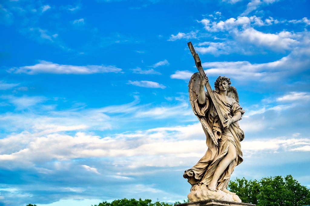 Samolepící fototapeta socha anděla držícího kříž