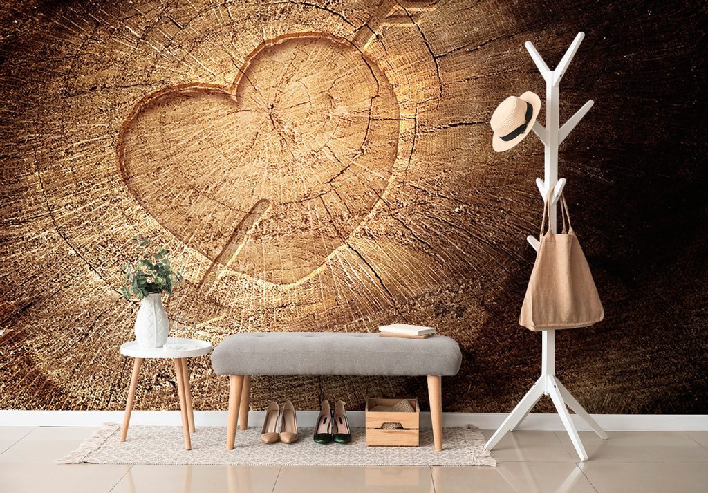 Samolepící fototapeta srdce se šípem na pařezu