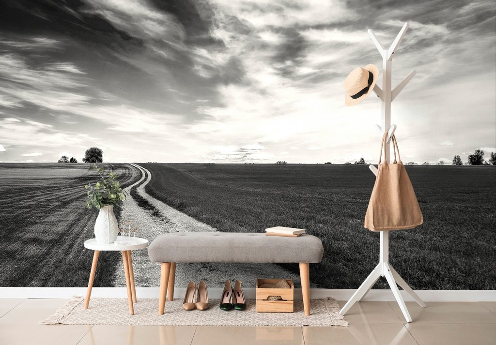 Samolepící fototapeta těsta jarní krajinou v černobílém provedení