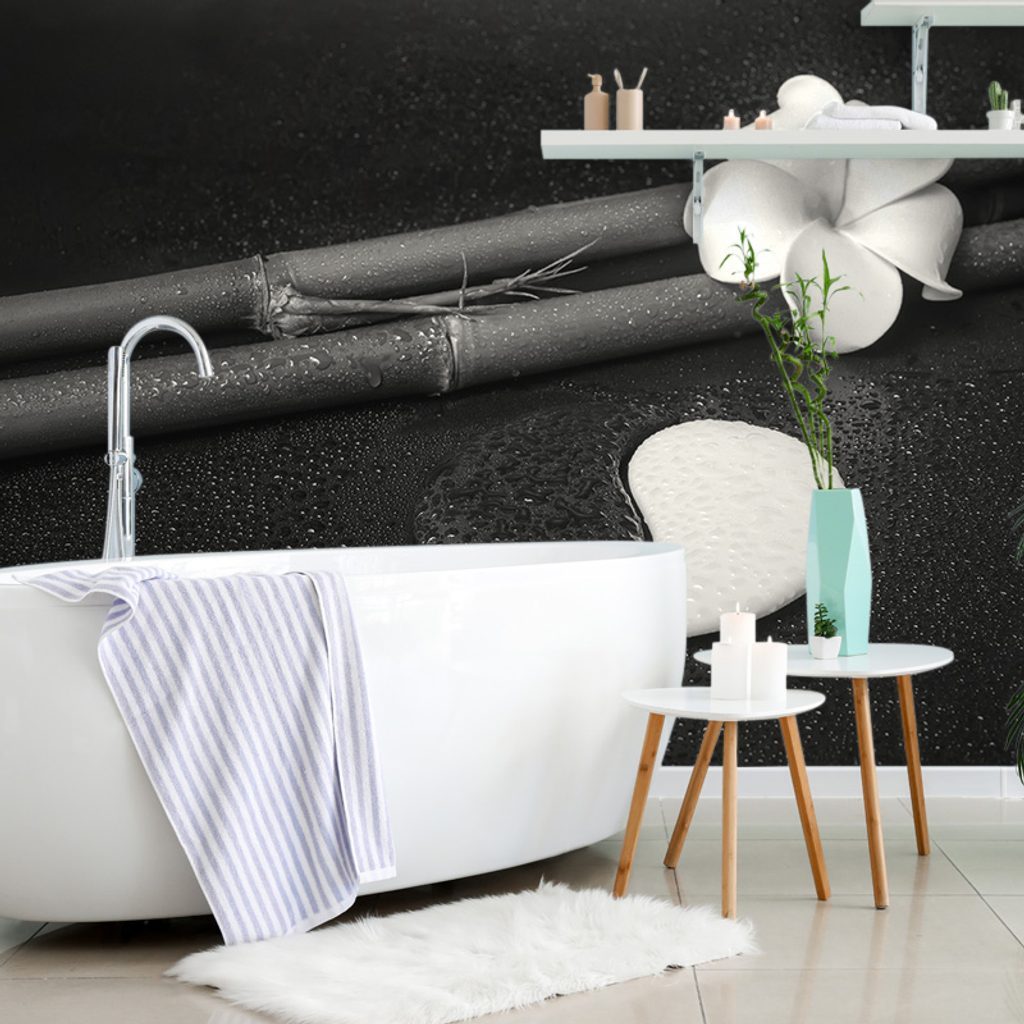 Samolepící fototapeta wellness zátiší s Jing a Jang v černobílém provedení