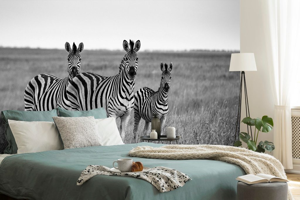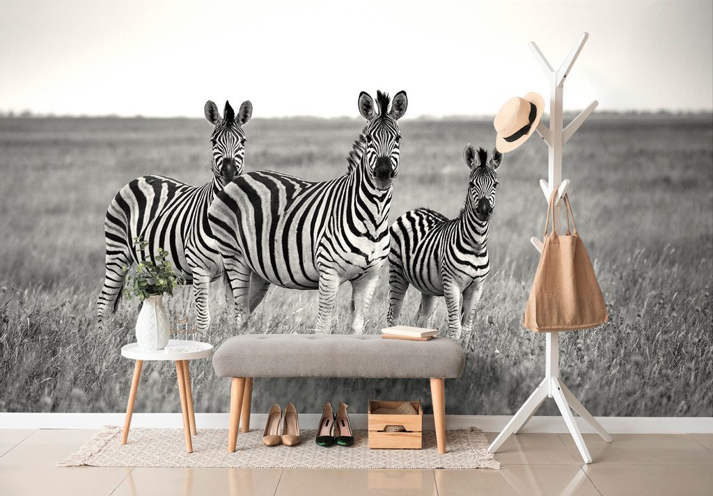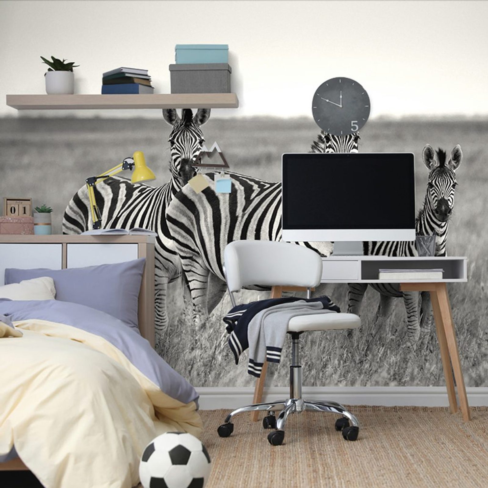Samolepící fototapeta zebří rodinka v černobílém provedení