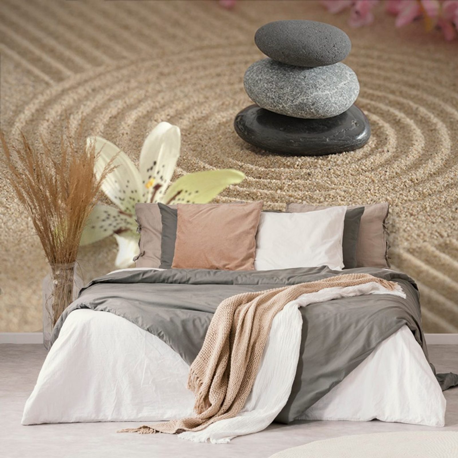 Samolepící fototapeta zen zahrada s kameny a květinami