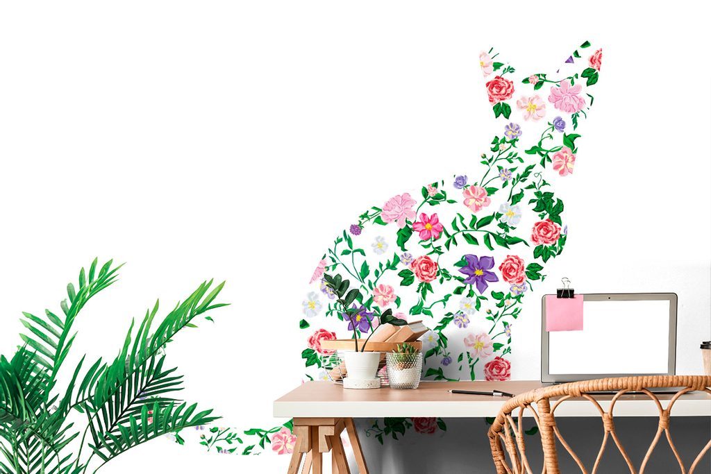 Samolepící tapeta abstraktní květinová kočka