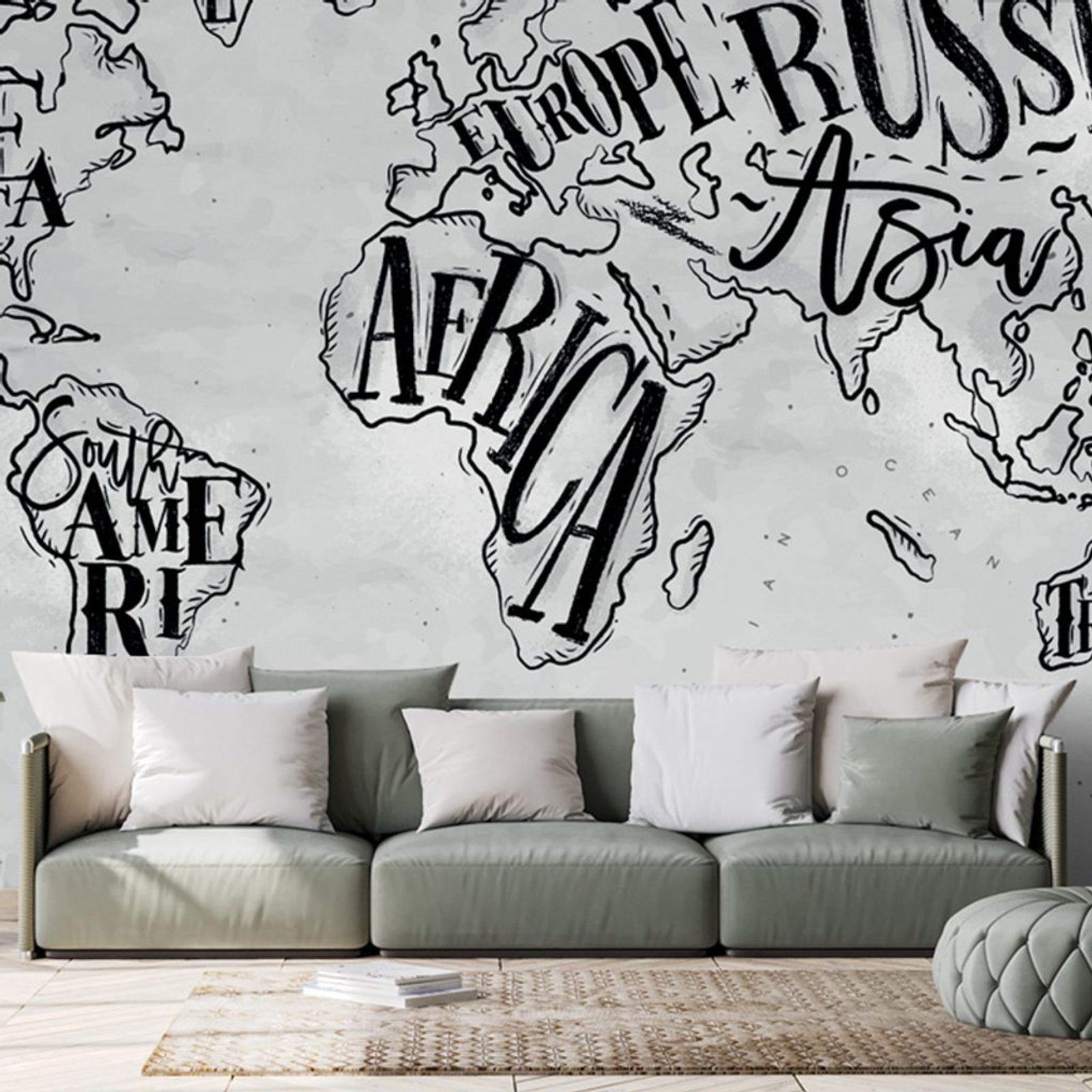 Samolepící tapeta abstraktní mapa celého světa v černobílém provedení