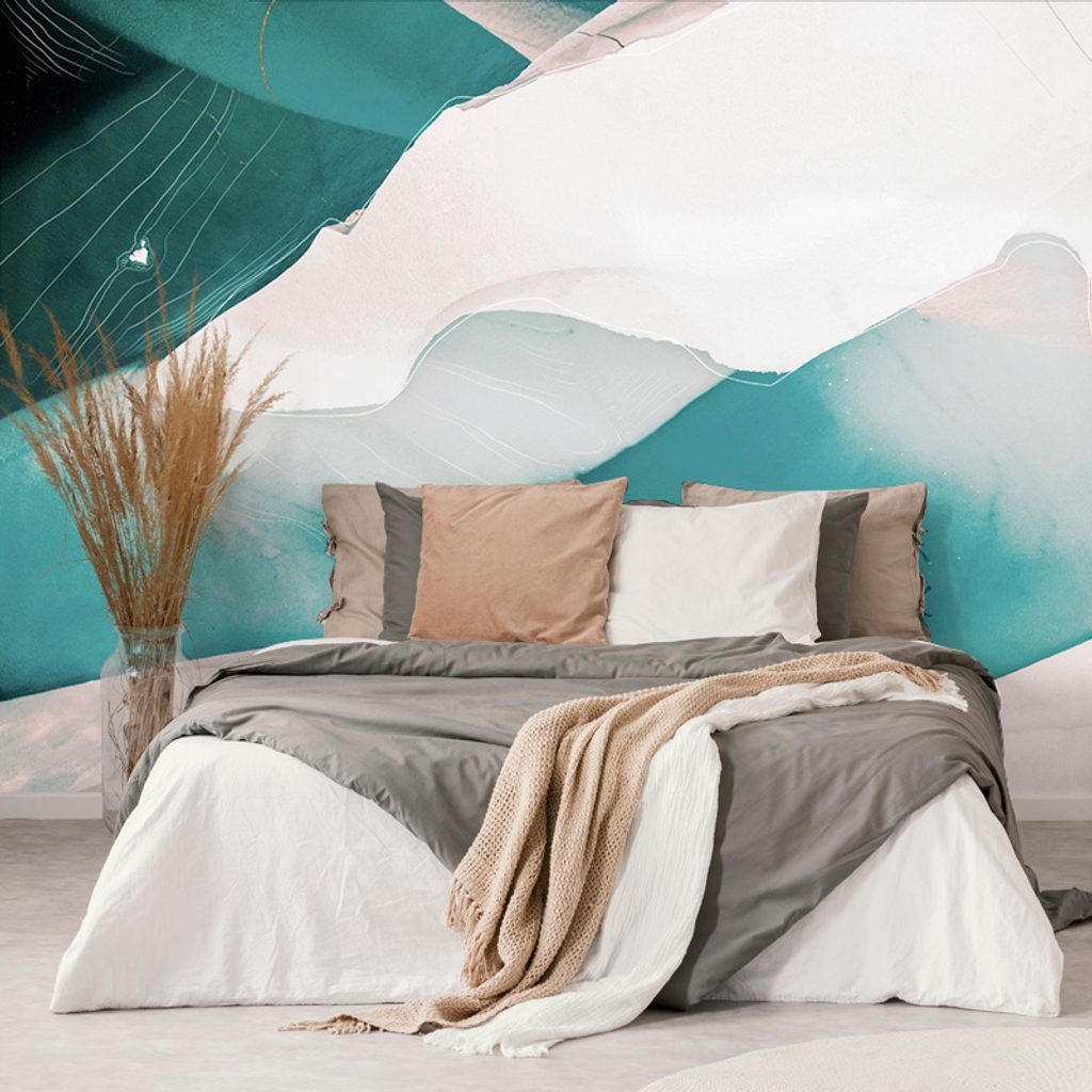 Samolepící tapeta profil ženy s modrou abstrakcí