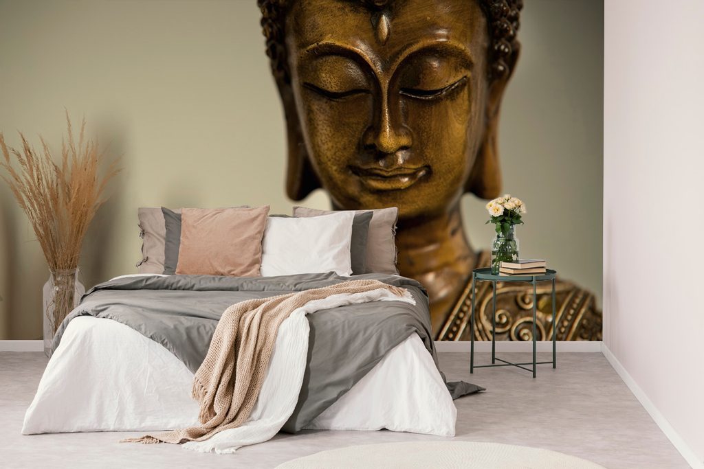 Samolepící tapeta bronzová socha meditujícího Buddhy
