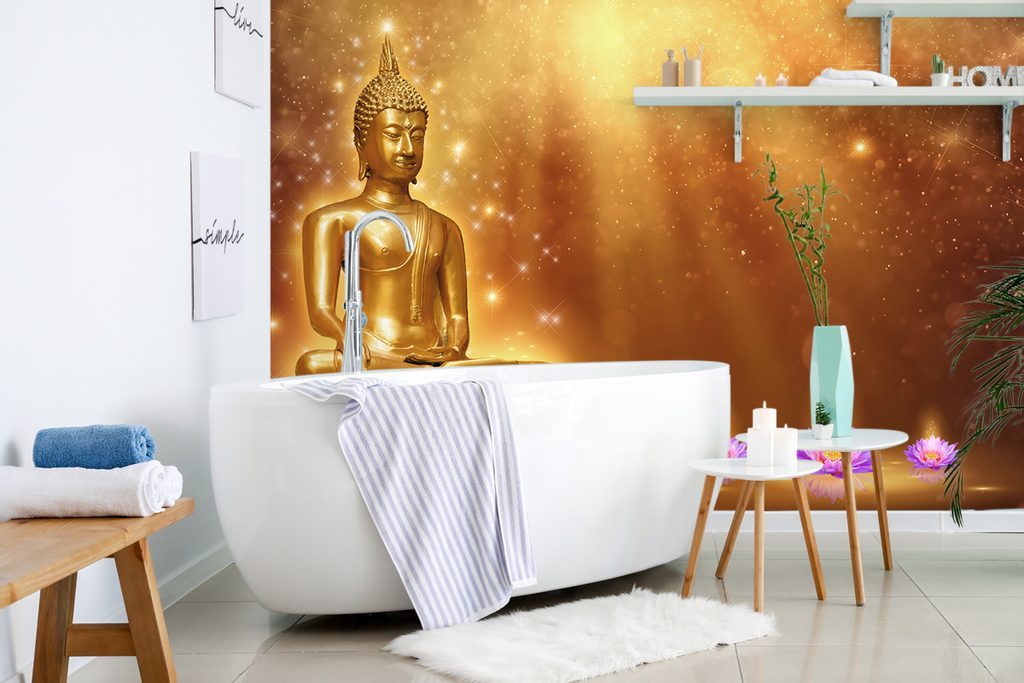 Samolepící tapeta bronzová socha meditujícího Buddhy