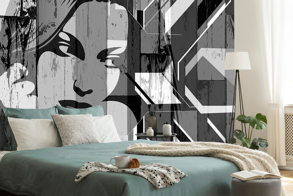 Samolepící tapeta černobílá krása ženy v pop art stylu