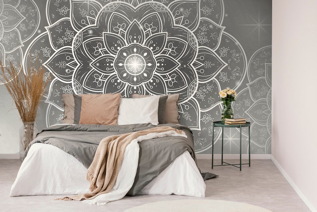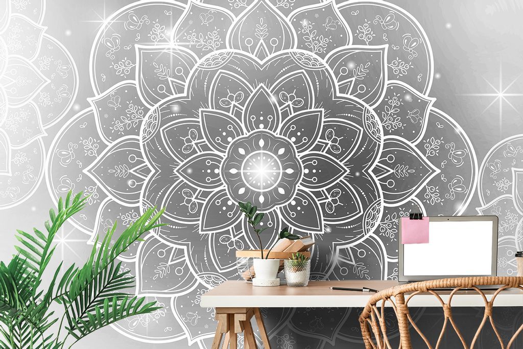 Samolepící tapeta černobílá Mandala s orientálním nádechem