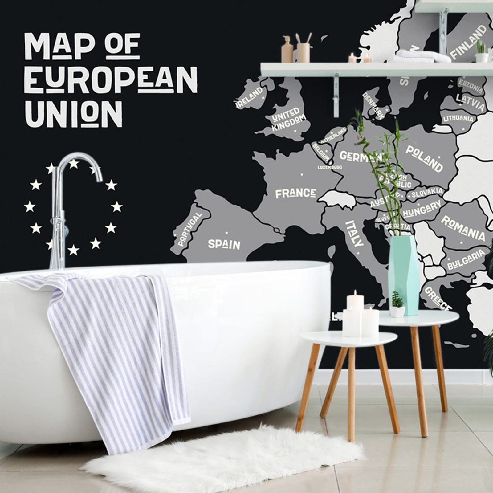 Samolepící tapeta černobílá mapa Evropské unie v moderním provedení