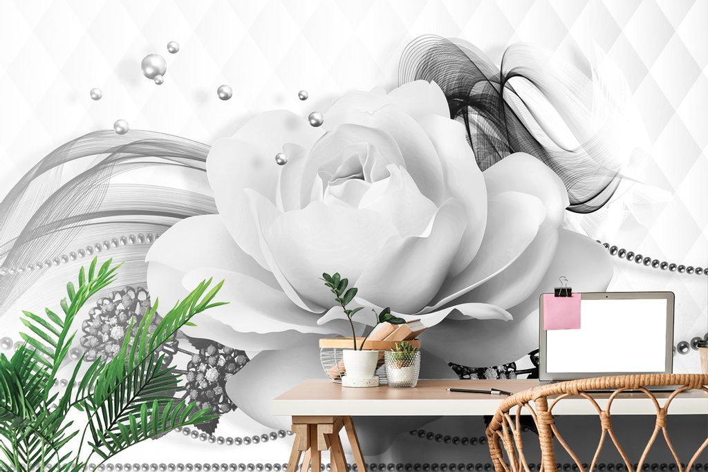 Samolepící tapeta černobílá půvabná růže v elegantním provedení
