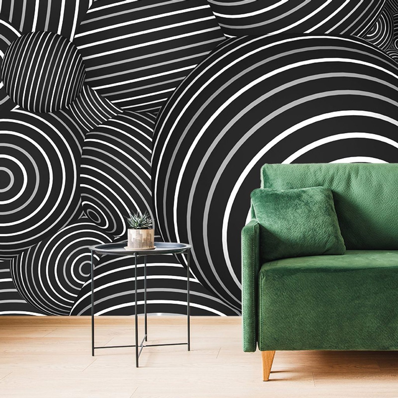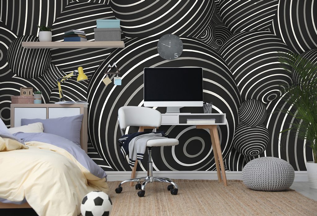Samolepící tapeta černobílé 3D kuličky s pásky