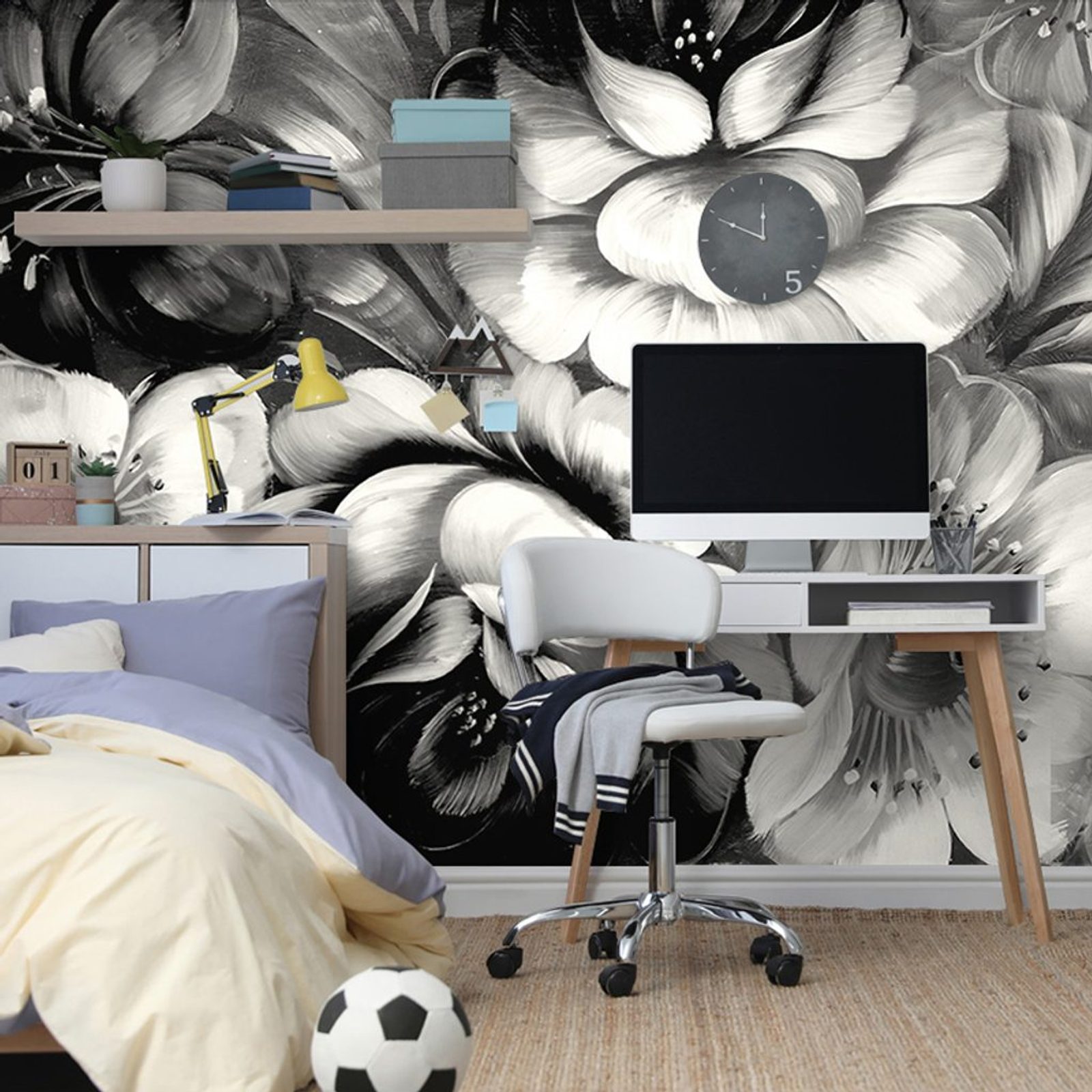 Samolepící tapeta černobílé květiny v impresionistickém stylu