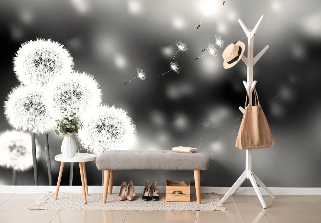 Samolepící tapeta černobílé nadýchané kloboučky pampelišky