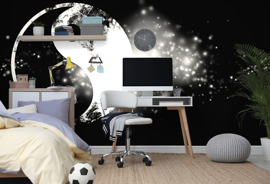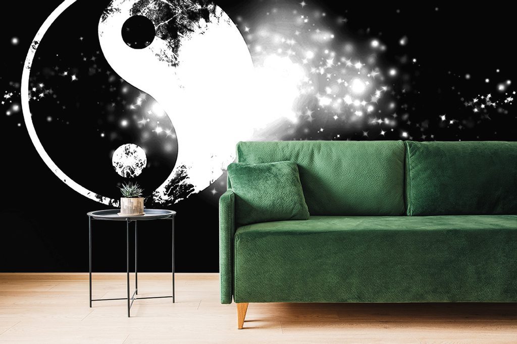 Samolepící tapeta černobílý Jin a Jang na kouzelném pozadí