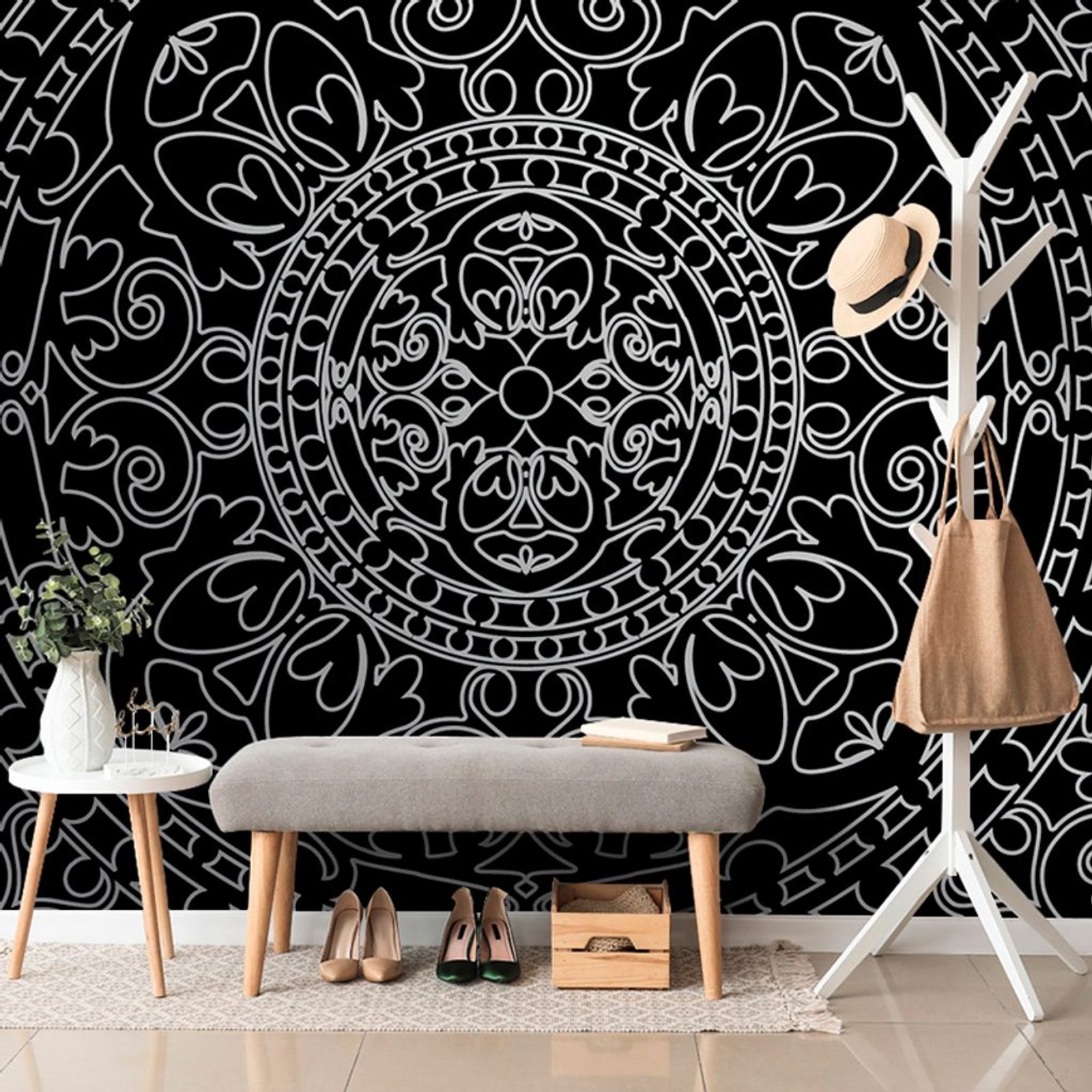 Samolepící tapeta černobílý luxusní oranament