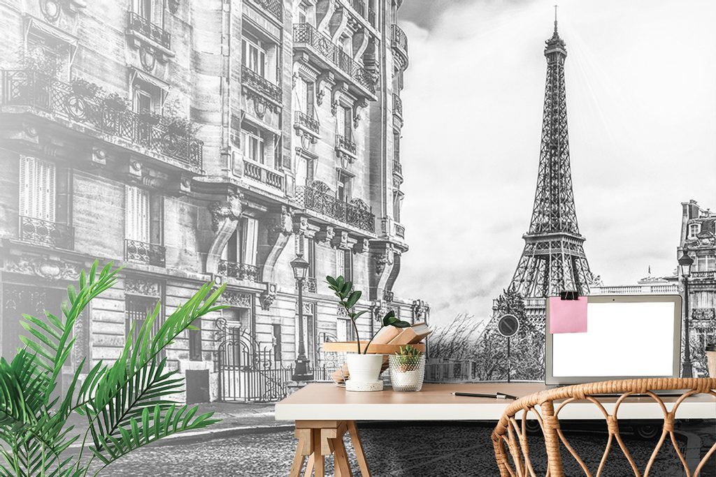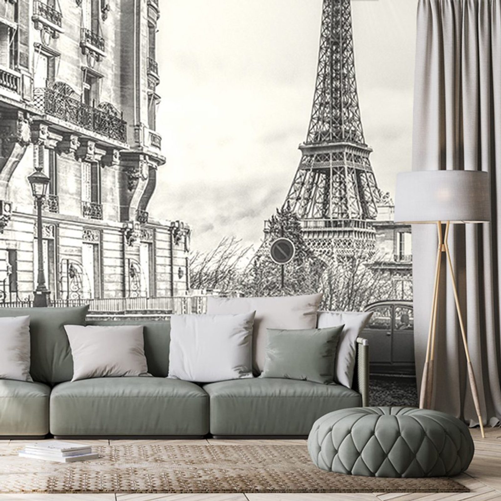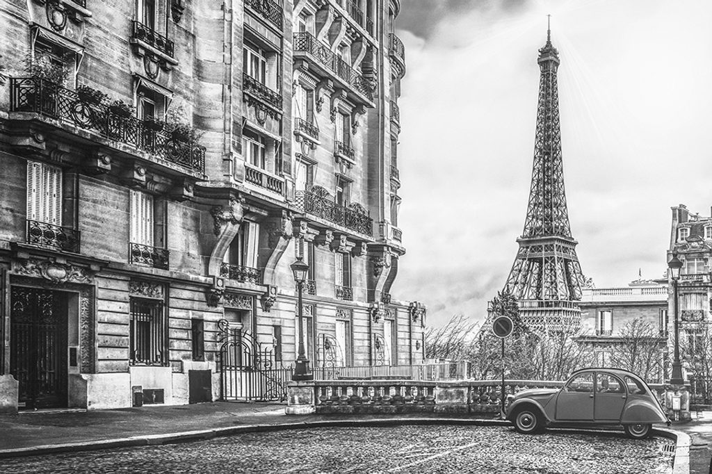 Samolepící tapeta černobílý retro pohled na Eiffelovu věž