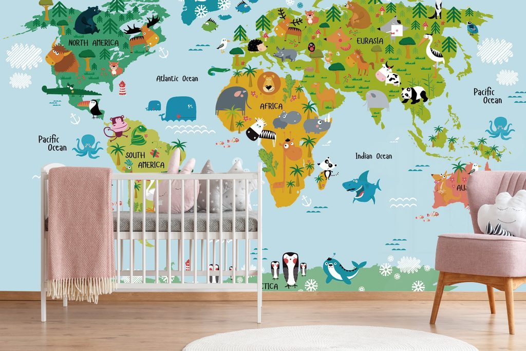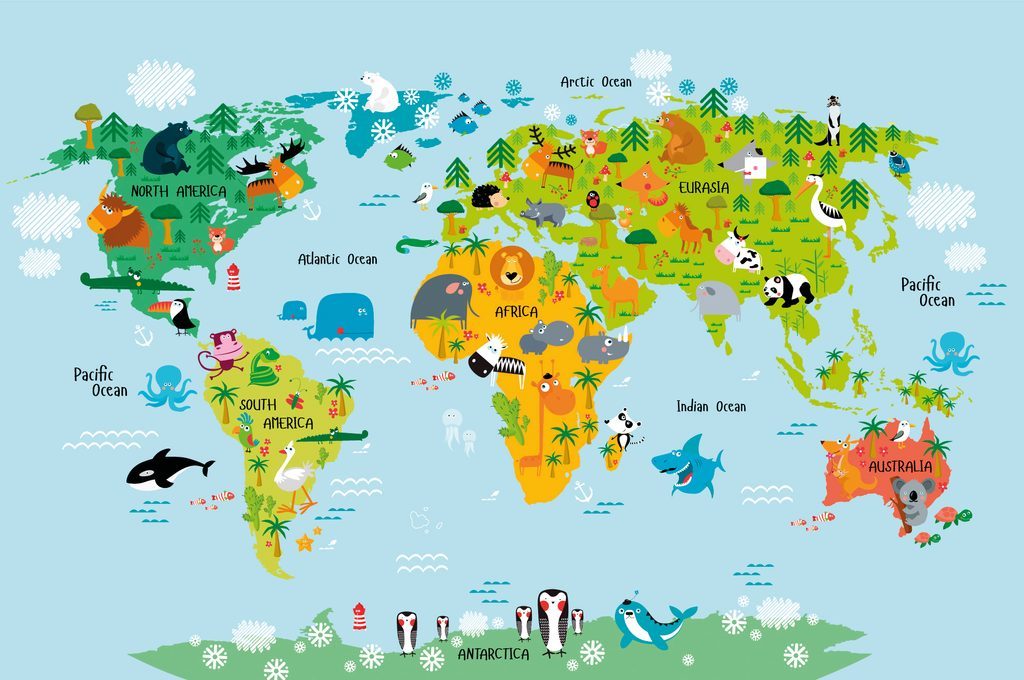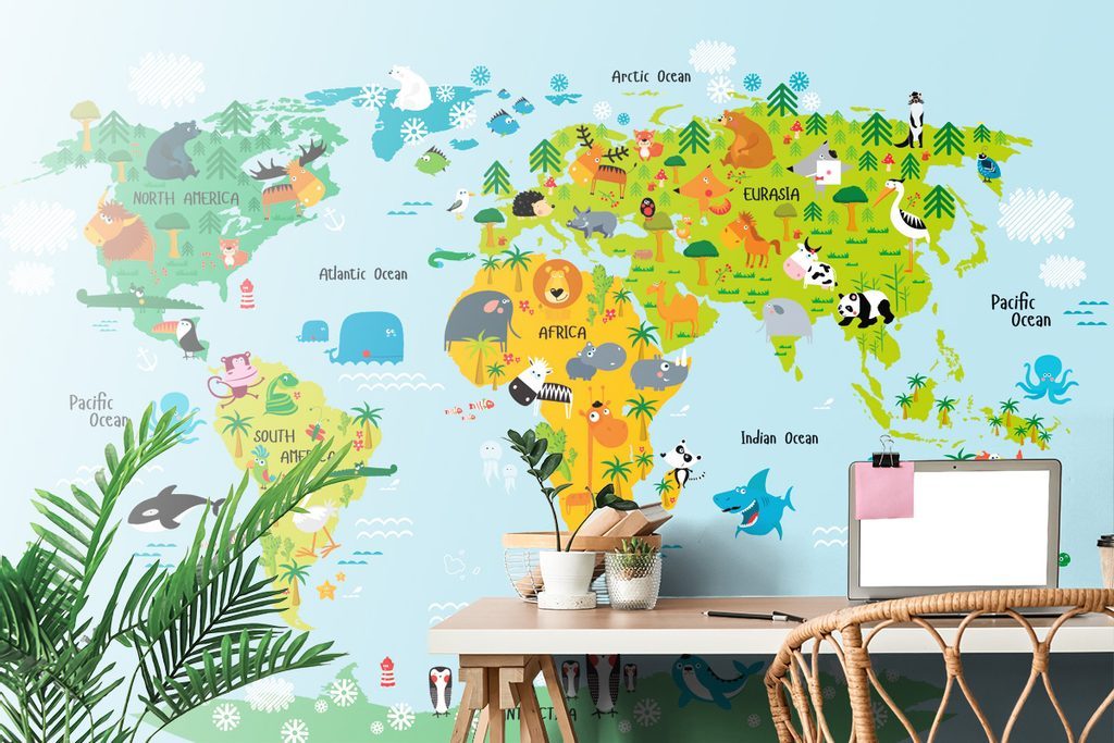 Samolepící tapeta dětská mapa s kreslenými zvířátky