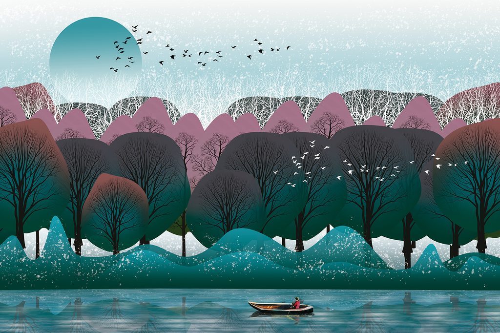Samolepící tapeta majestátní stromy na romantickém růžovém pozadí