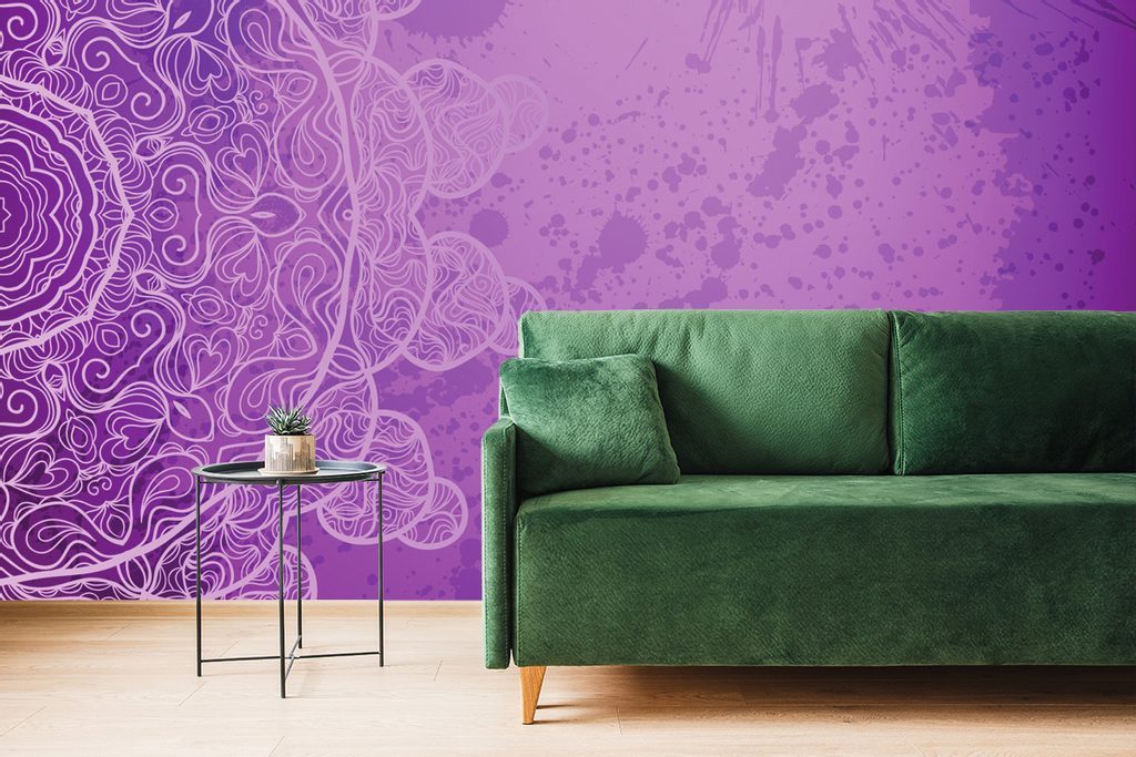 Samolepící tapeta fialová Mandala s abstraktními prvky