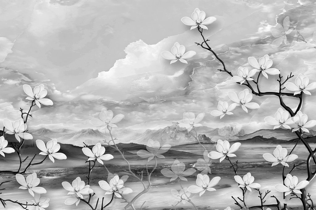 Samolepící tapeta hra přírody v černobílém provedení