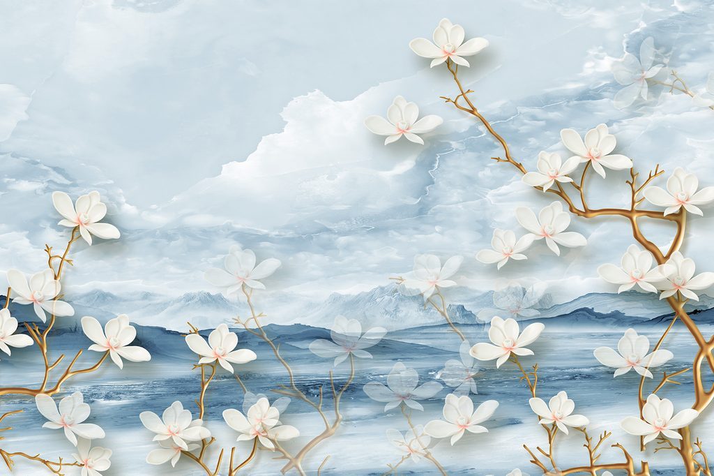 Samolepící tapeta umělecká louka na bílém pozadí