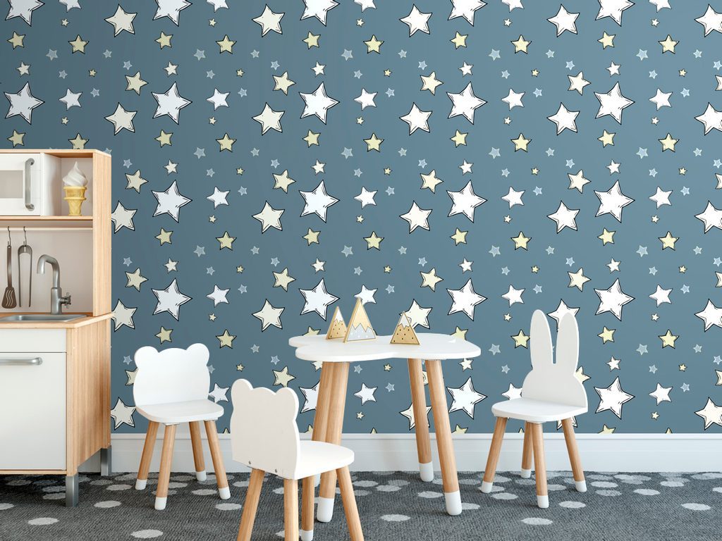 Samolepící tapeta hravé hvězdičky na modrém pozadí