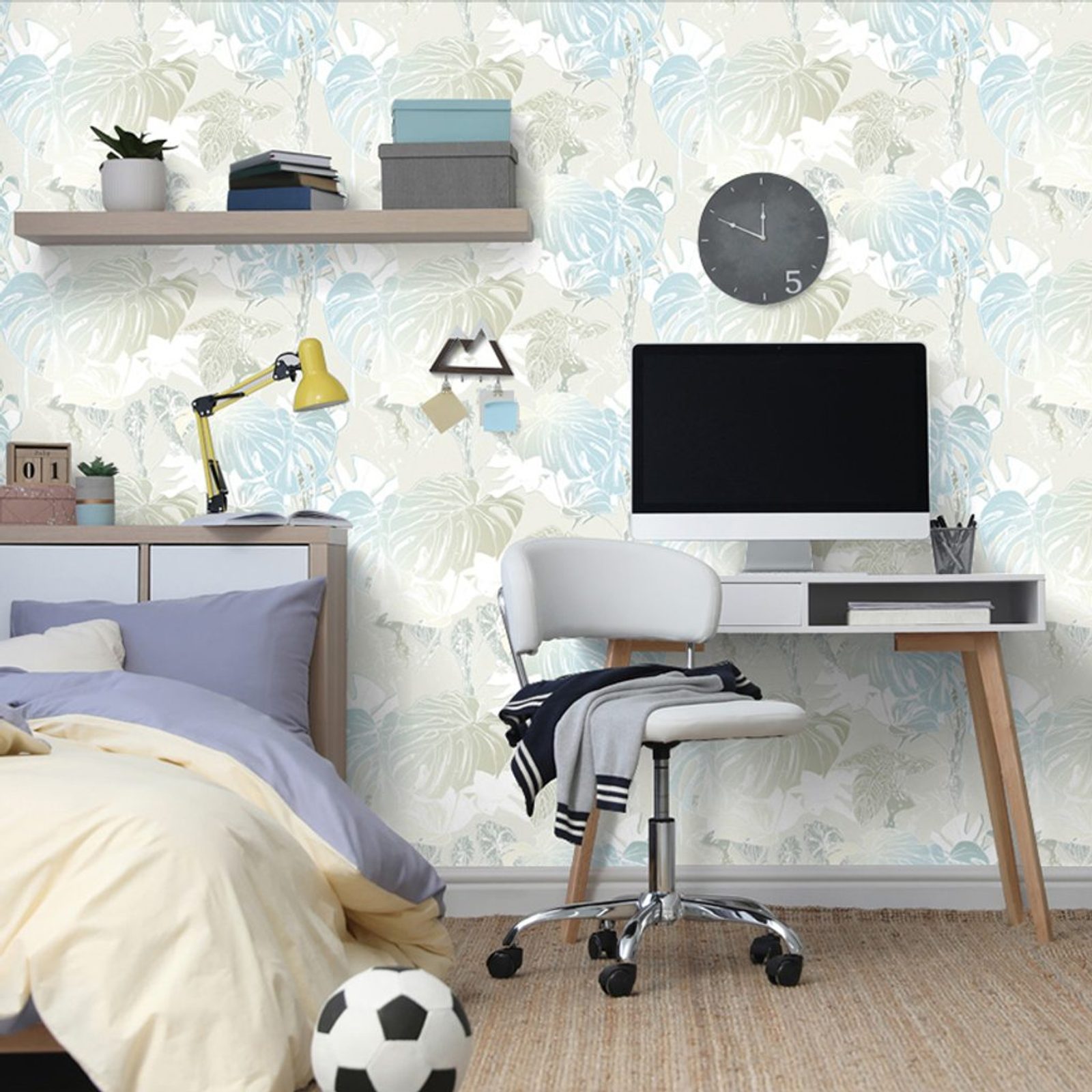 Samolepící tapeta jemné listy monstery na světlém pozadí