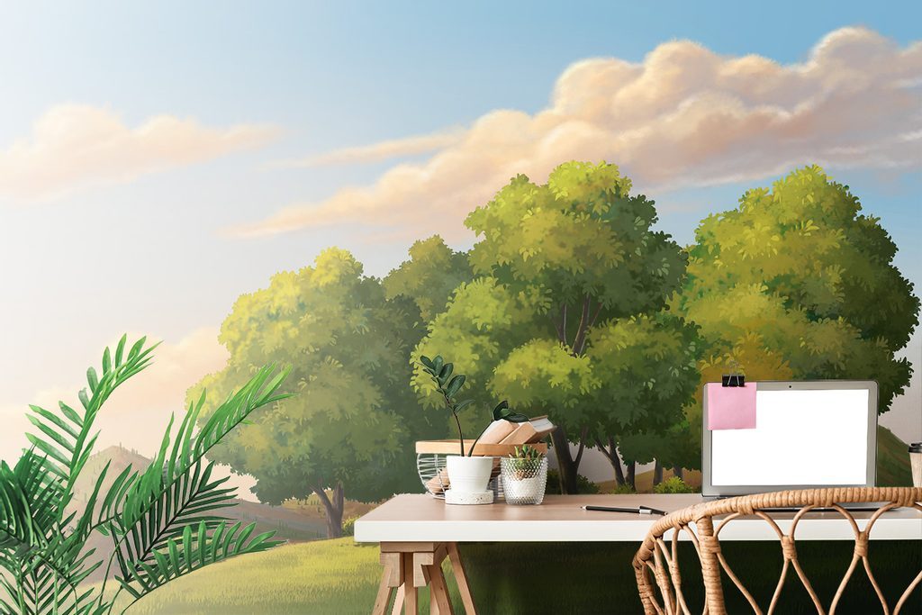 Samolepící tapeta kreslená zelená krajinka