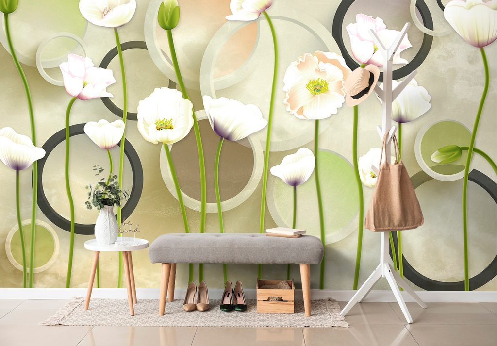 Samolepící tapeta květiny bílého máku s abstraktním pozadím