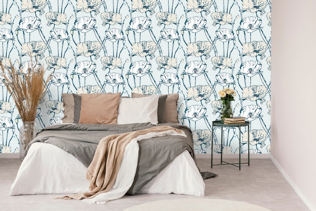 Samolepící tapeta květiny v rozkvětu v modrém provedení