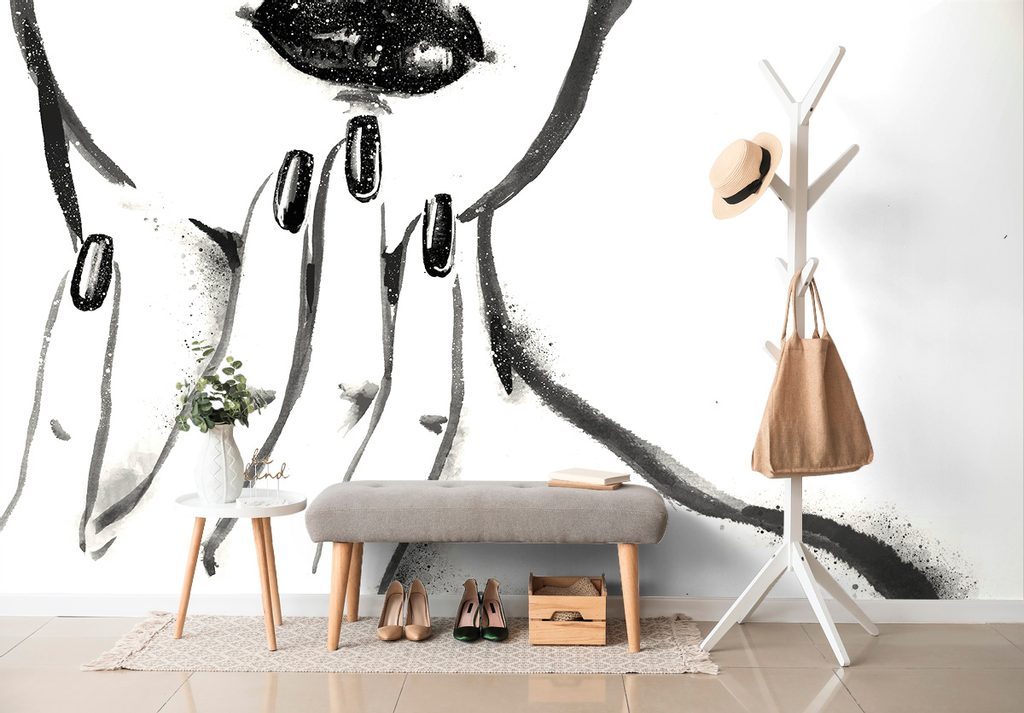 Samolepící tapeta malovaný detail ženských per v černobílém provedení