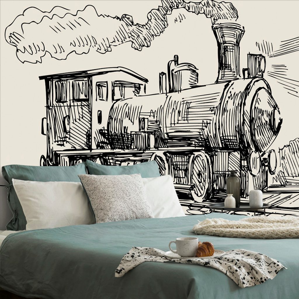 Samolepící tapeta malovaný vlak v uměleckém provedení