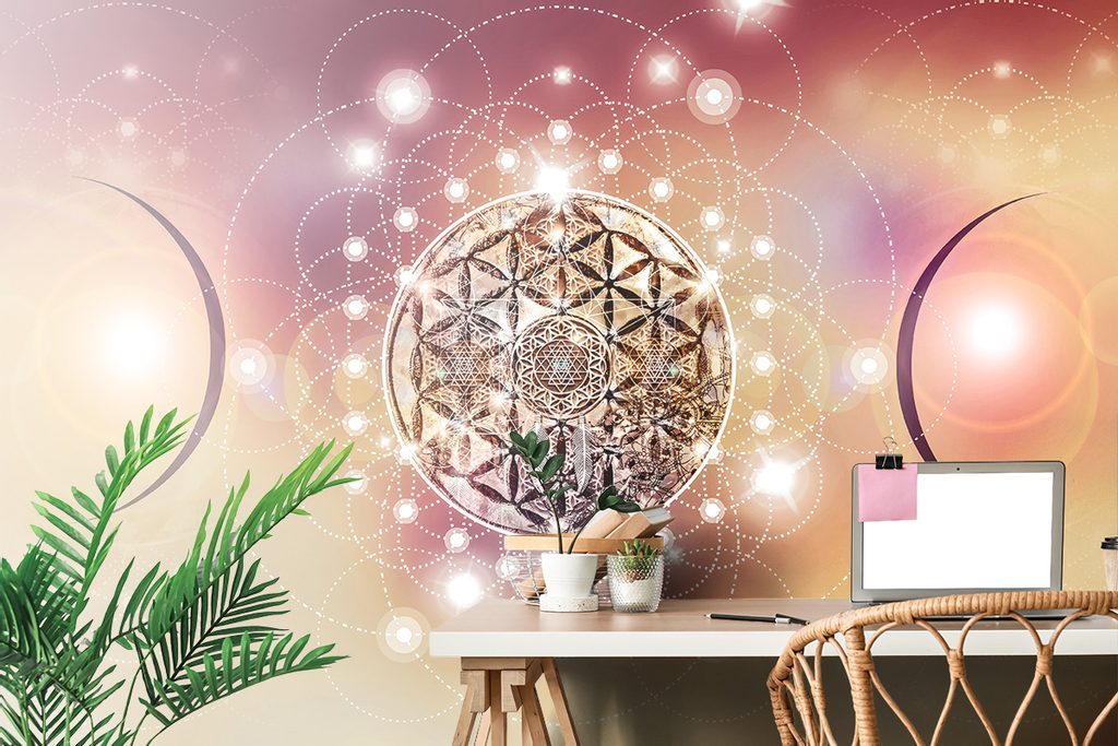 Samolepící tapeta kresba větve s květinami při úplňku měsíce