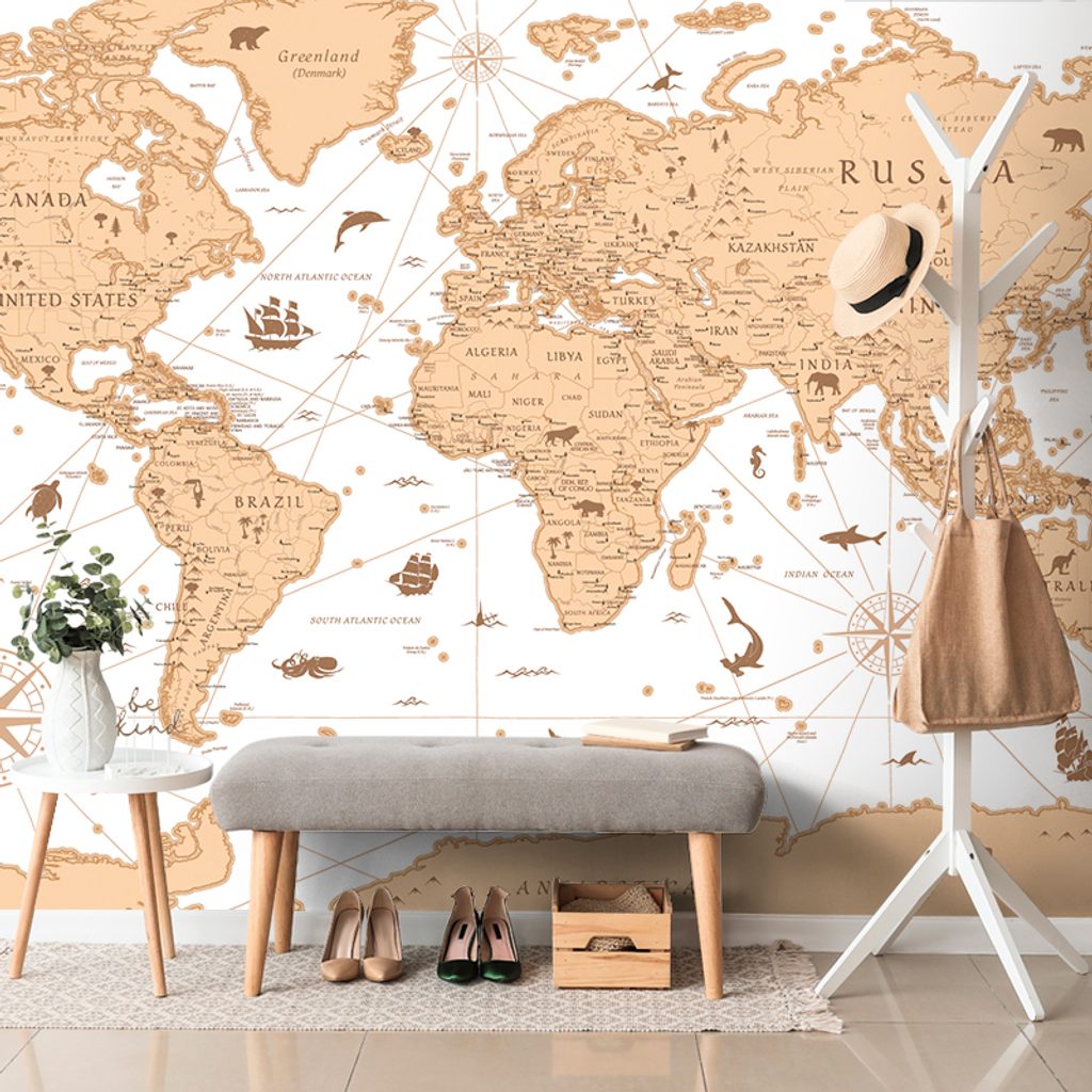 Samolepící tapeta mapa světa s historickým nádechem v béžovém provedení