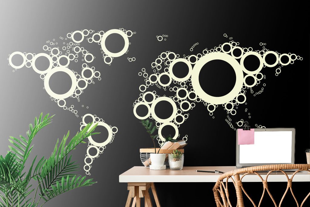 Samolepící tapeta mapa světa tvořená kružnicemi v černobílém provedení