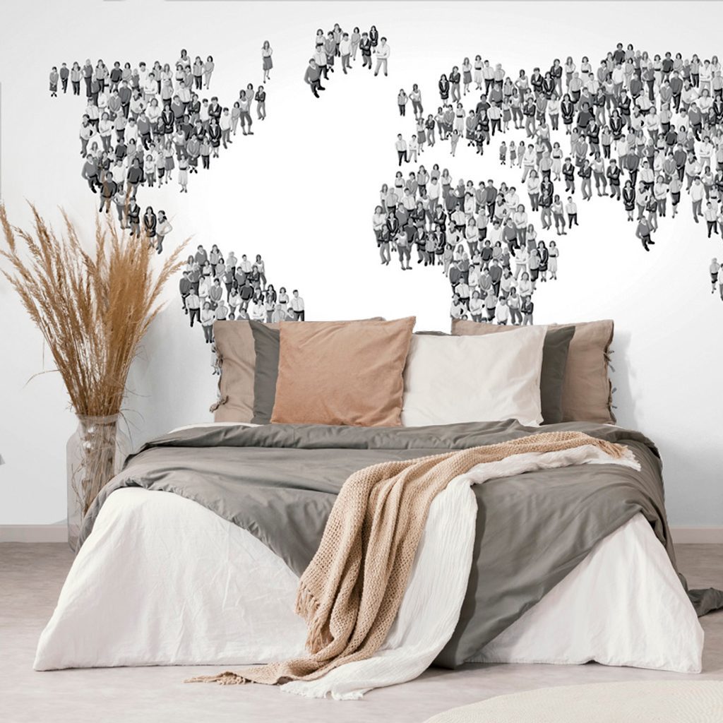 Samolepící tapeta mapa tvořená lidmi v černobílém provedení