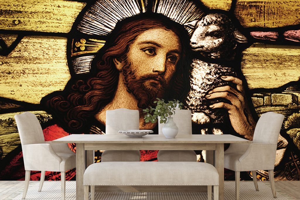 Samolepící tapeta milosrdný Ježíš Kristus s jehňátkem